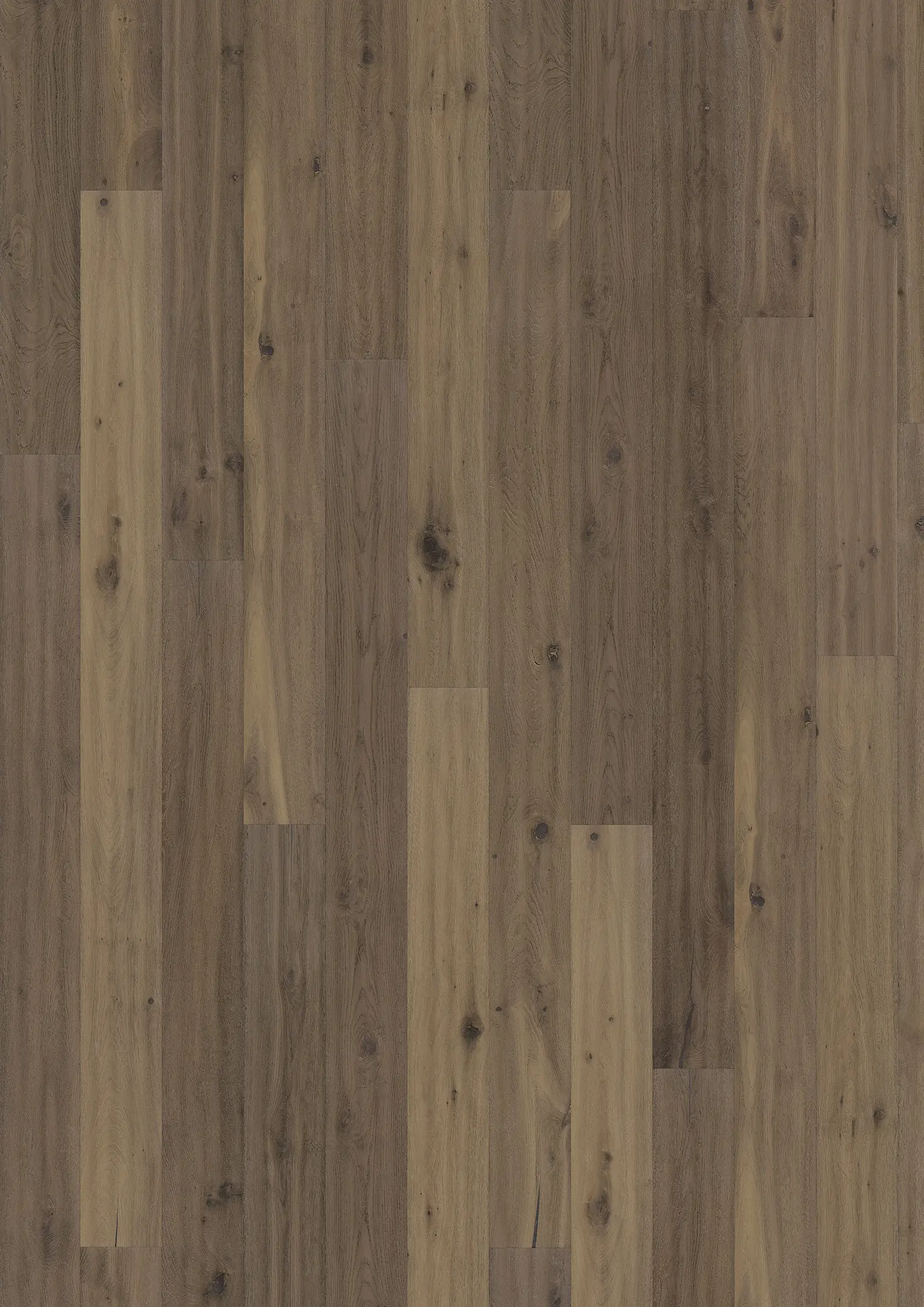 Kalla nyanser av frost och salt i rökt ek. Kvistar, grå olja och handskrapning skapar ett unikt, slitet uttryck.