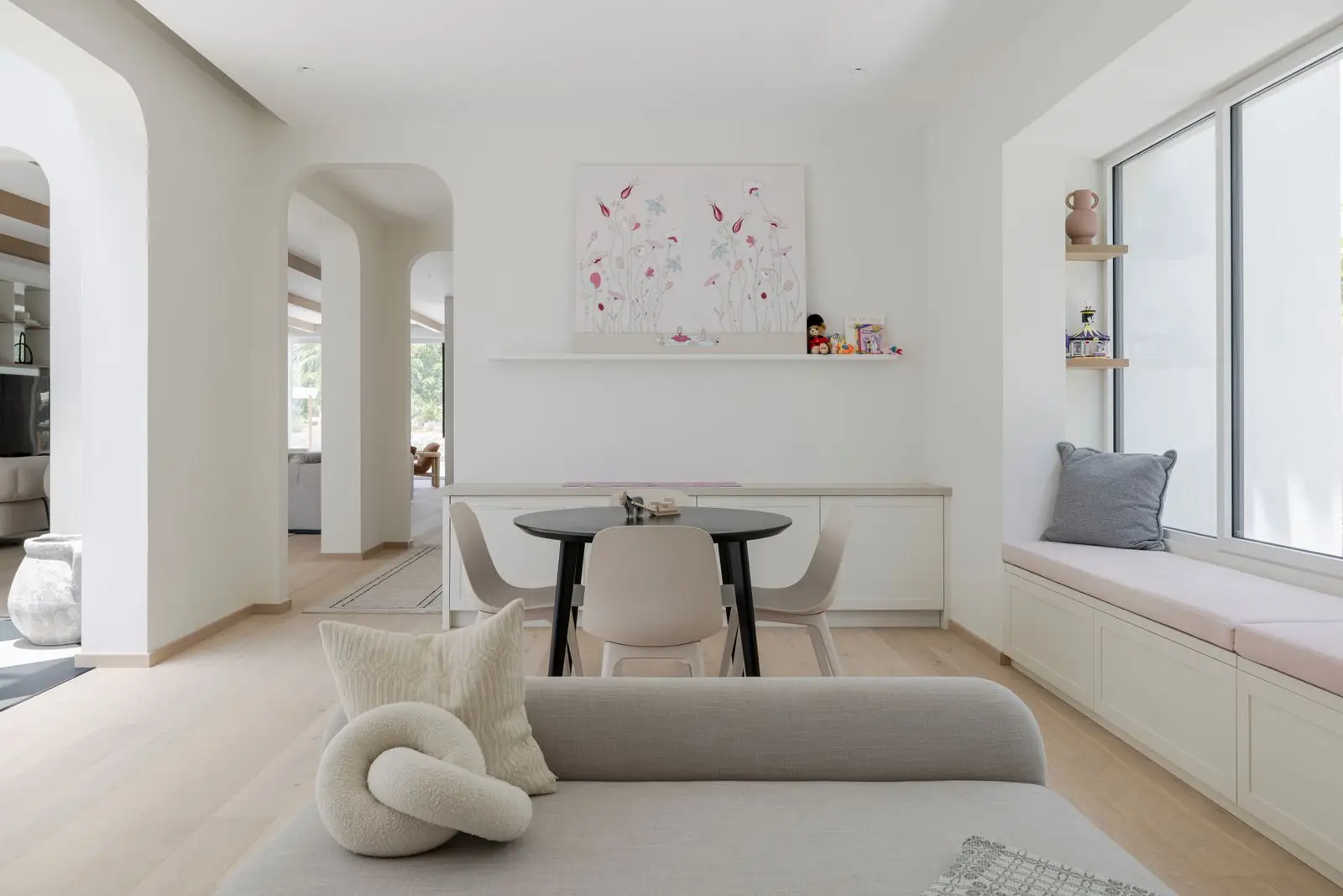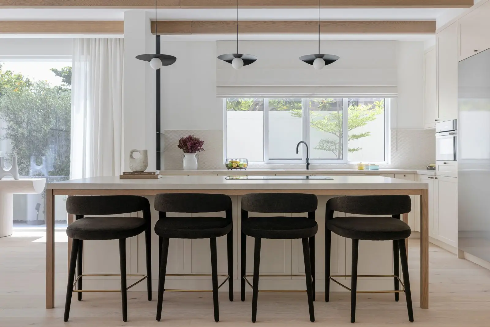 The semi-transparent white stain on this single-strip oak floor from the Lux Collection balances the light and dark contrasts in the wood, allowing the subtle warm oak tones to softly filter through. Four-sided micro-bevelling at the edging ensures a classic fullplank look and feel. Each board is carefully brushed to perfection to enhance the natural character of the grain. The ultra-matt lacquer finish enhances the natural variations in the wood, creating the impression of newly sawn timber. This effectively eliminates glare while protecting the floor from daily wear.
